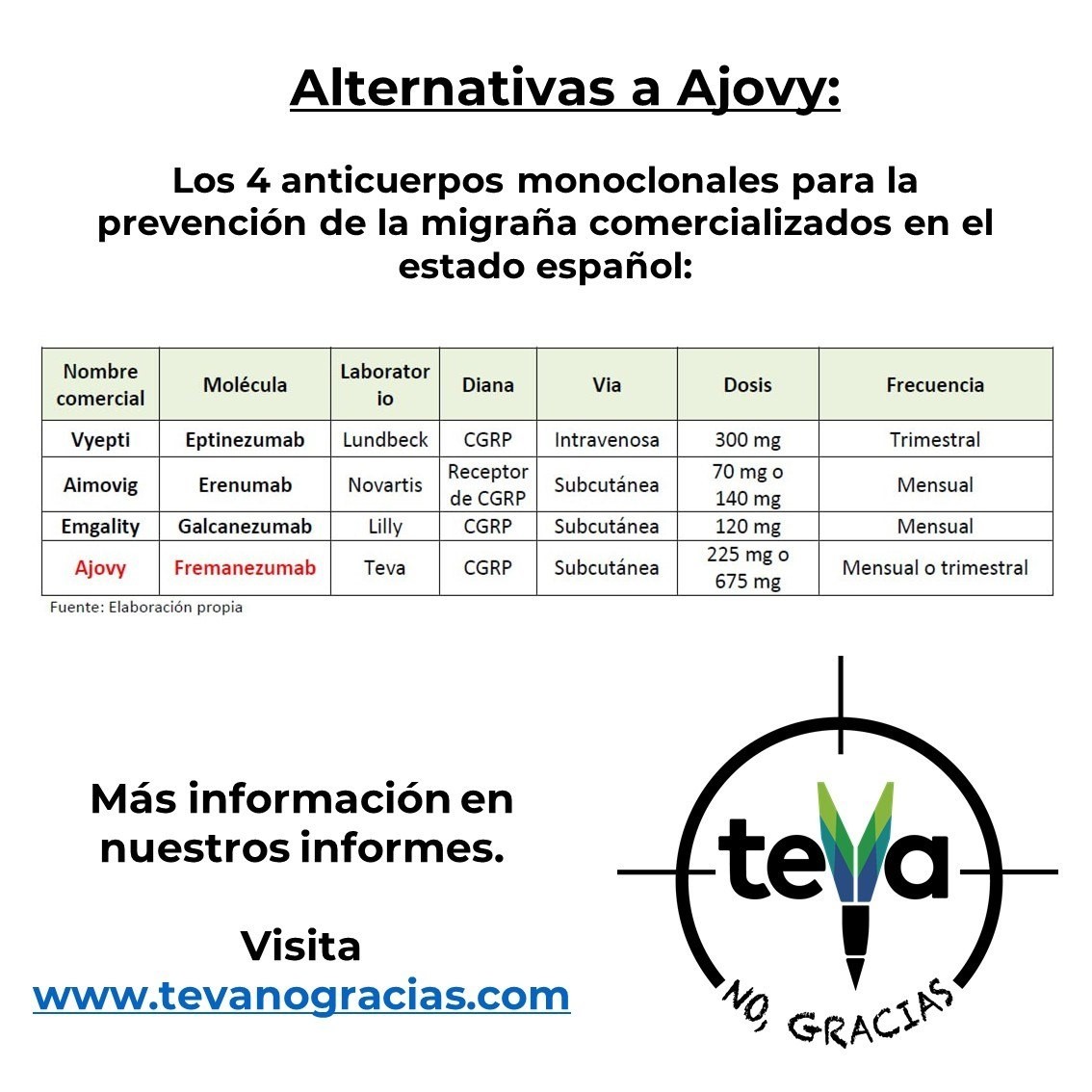 Además de Ajovy, en España existen otros 3 anticuerpos monoclonales similares comercializados.